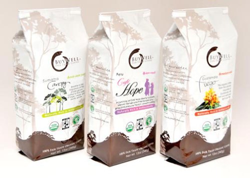 BuyWell 100% Fair Trade Organic, Single Origin Sampler Pack: Peru, Guatemala, Sumatra, 12-Ounce Bags (Pack of 3) GROUND Reviews